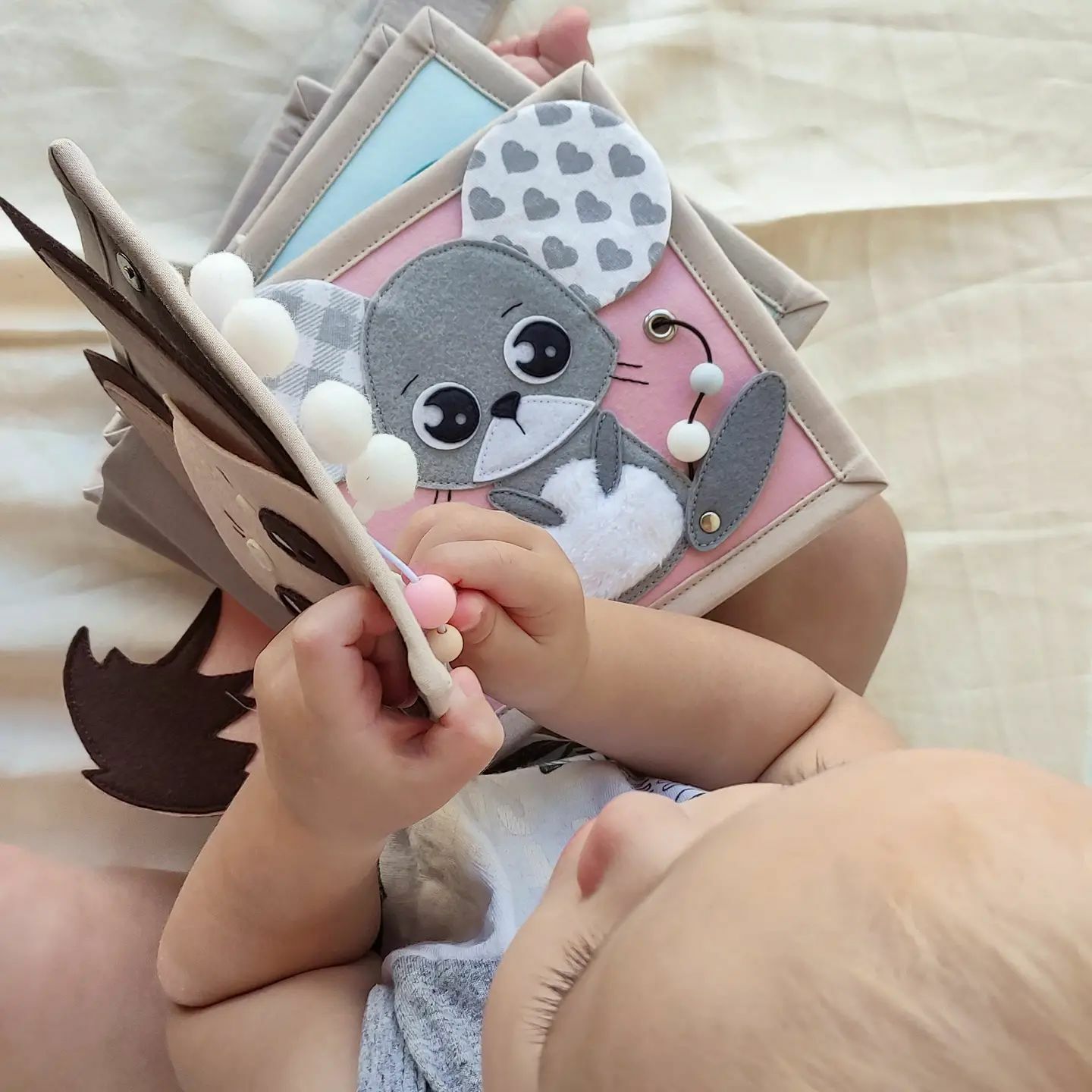 Ребёнок совершенствует «пинцетный» захват и мелкую моторику благодаря развивающим элементам: пуговицам, шнурочкам, липучкам и прочим; а развитие тактильных и сенсорных навыков улучшается за счёт правильно подобранных фактур в книжке.